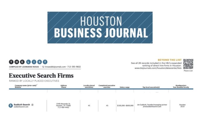 A new year and we’re climbing higher! We’ve been named No. 5 on the Houston Business Journal’s Executive Search Firms List, up from 6th last year and 10th the one prior. This progress is only possible because of the trust our clients place in us, thank you for allowing us to be part of your growth.